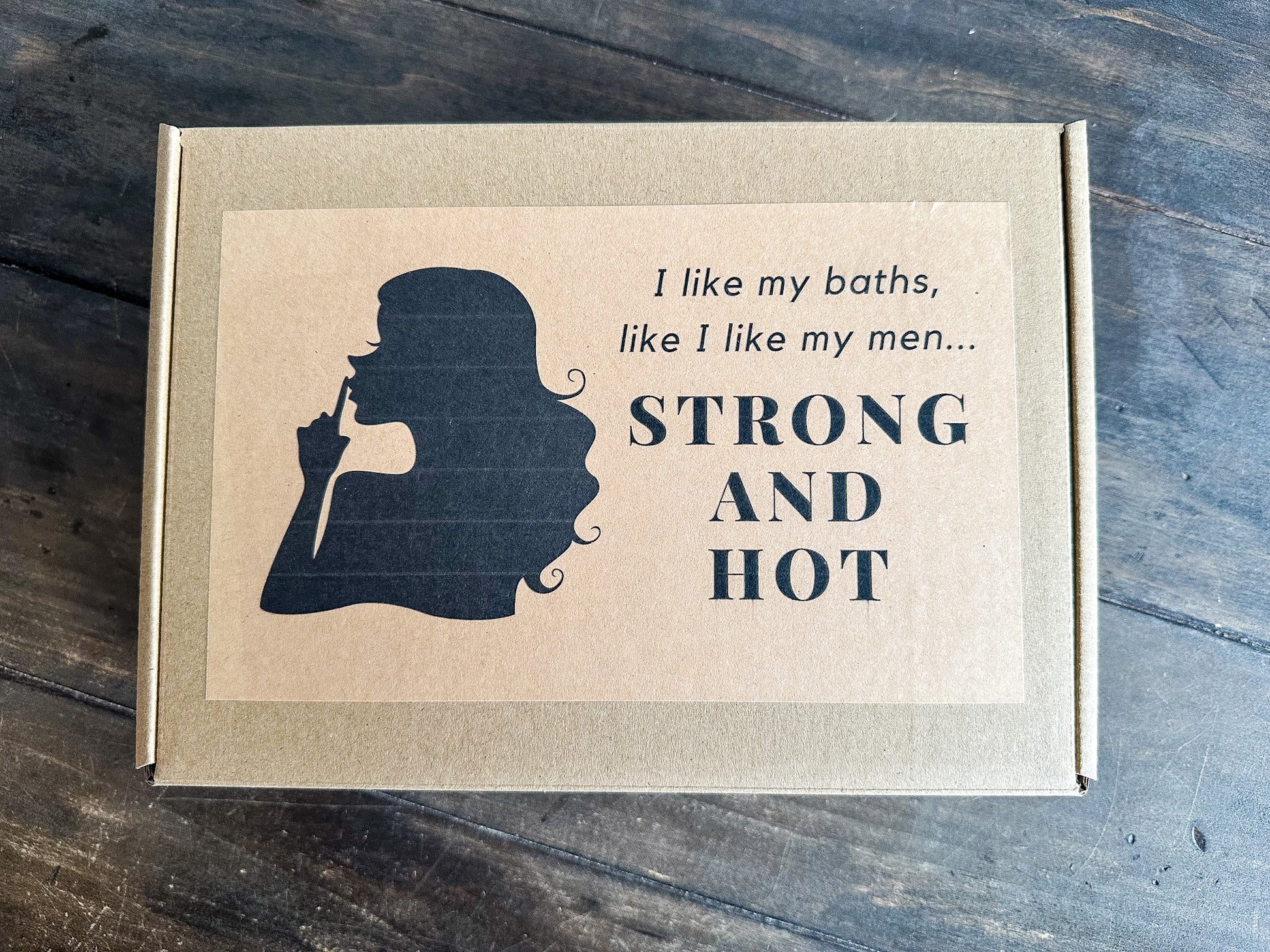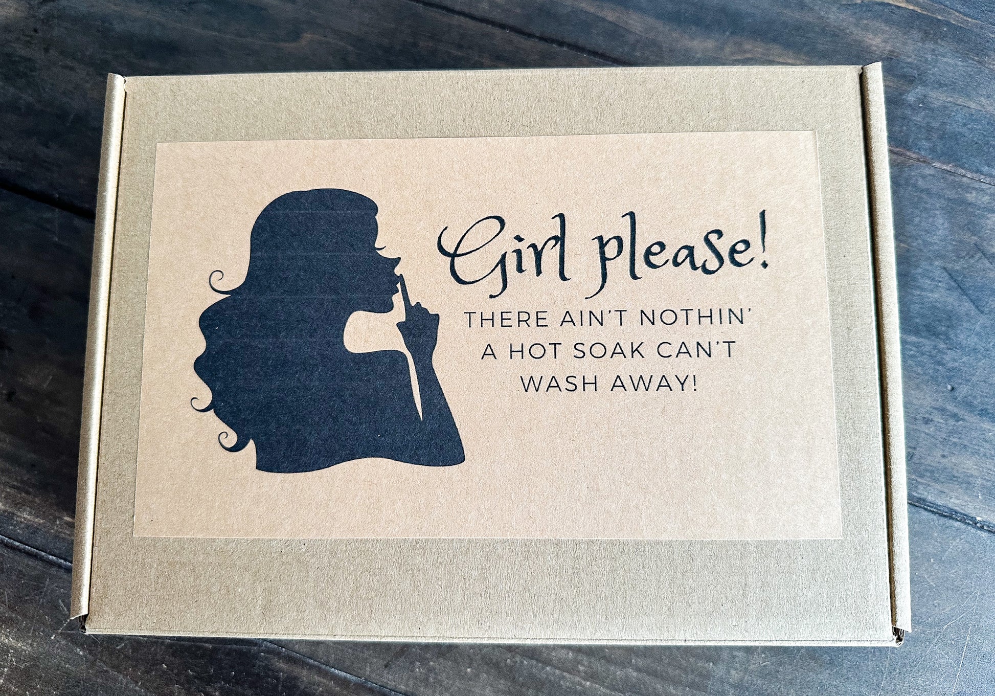 Gift box includes three herbal bath soaks and a set of tea light candles with a touch of sarcasm!